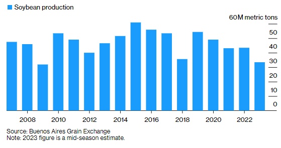 阿根廷是世界上最大的豆粕和豆油供应国,然而,由于当地干旱天气的预测,该出口国的大豆产量正下滑至2009年以来的最低水平。上周,阿根廷的布宜诺斯艾利斯谷物交易所将产量预期下调至14年来的最低水平,并警告称有可能进一步减产。收成减少对阿根廷政府来说是个坏消息,该国依靠农业来推动经济,依靠大豆出口来支撑央行的美元储备。此外,减产还将推高全球大豆价格。