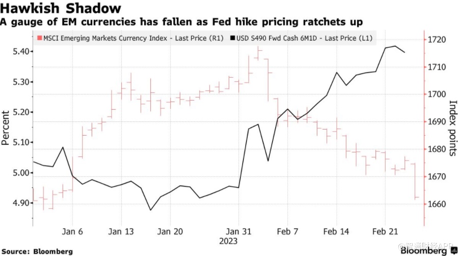 衡量发展中国家货币的基准指标的跌势加剧,这将是自去年9月以来最糟糕的一个月。摩根大通衡量新兴市场货币风险偏好的指标本月也有所下降,在2月中旬转为负值,为今年首次。