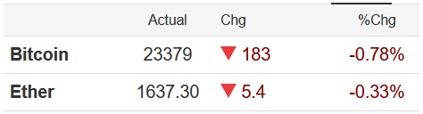截至发稿,比特币跌0.78%,报23379美元/枚;以太坊跌0.33%,报1637.3美元/枚。比特币近段时间以来表现不佳除了与市场对美联储的加息预期升温有关之外,美国监管机构对加密货币行业的整顿也给比特币等带来压力。