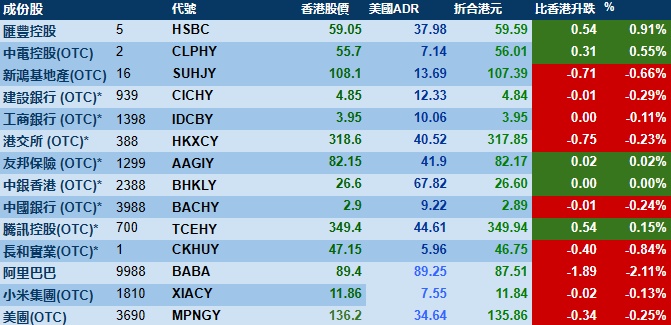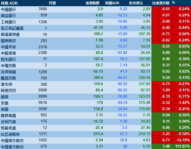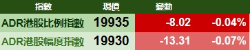 智通财经APP获悉,周一美股三大指数集体收涨,港股ADR指数下跌,按比例计算,收报19935点,较香港收市跌8.02点或0.04%。