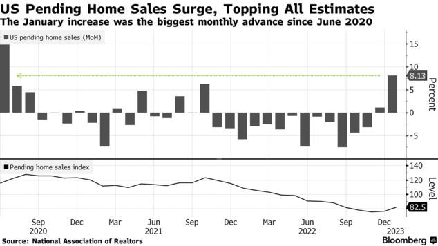 智通财经APP获悉,根据美国房地产经纪人协会周一公布的数据,美国1月签约待过户成屋销售指数较上个月增长8.1%至82.5,为2020年6月以来的最大增幅。这可能是例外情况,因为1月较低的抵押贷款利率有助于支撑需求。