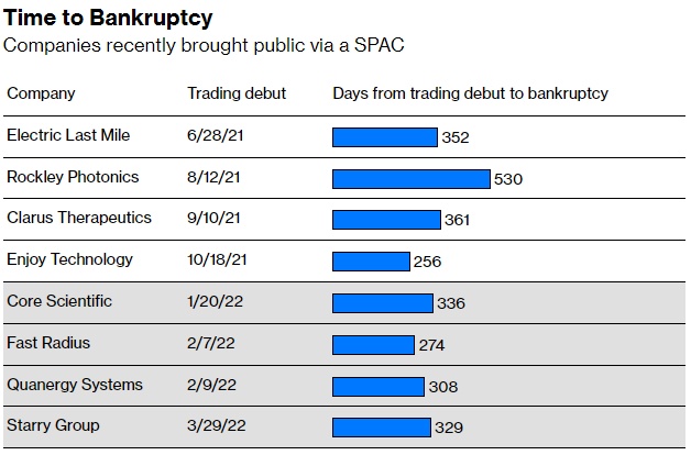 这种交易是疫情时期华尔街的一种时尚,但现在越来越多以这种方式上市的企业都破产了,这凸显出SPAC规则的投机性有多强。