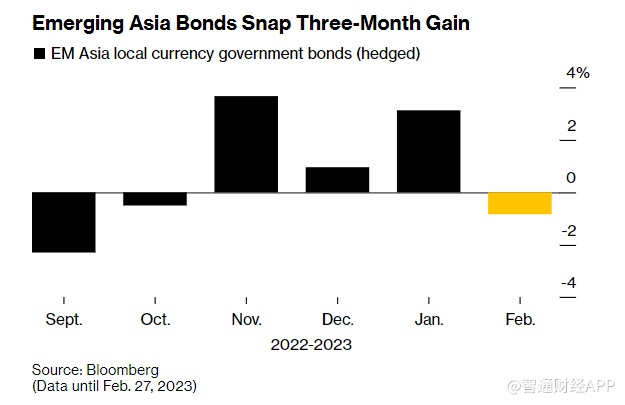 这一前景与1月份的乐观情绪截然相反,当时市场认为几乎所有亚洲新兴市场资产都值得买入,亚洲股市跟随货币走高,而债券则创下2008年以来表现最好的一个月。