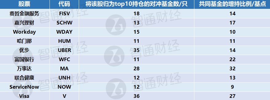 高盛在2023年初调查了758只总股票头寸为2.3万亿美元的对冲基金和543只管理资产规模为2.4万亿美元的共同基金。在受看好的股票中,对冲基金重要头寸的篮子和共同基金增持股票的篮子中有10只股票重叠。