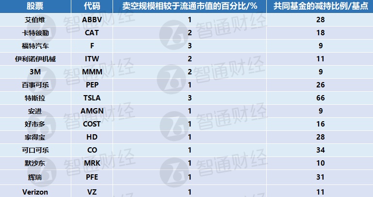 而在不受欢迎的股票中,对冲基金非常重要的空头头寸篮子和共同基金减持篮子有28只股票重合。