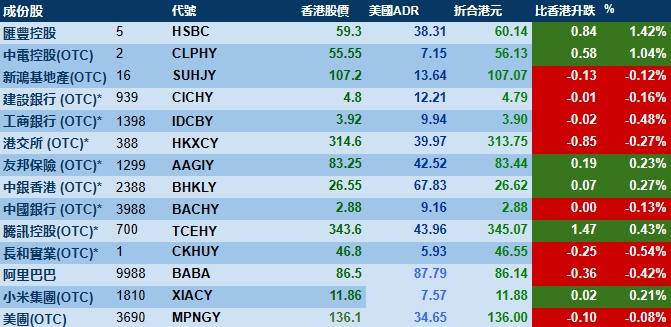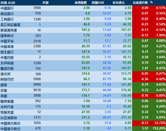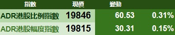 智通财经APP获悉,周二美股三大指数集体收跌,港股ADR指数上涨,按比例计算,收报19846点,较香港收市涨60.53点或0.31%。