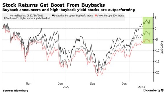随着2023年欧洲企业盈利预计将下降,其中一些股东的回报可能面临风险。通胀带来的利润压力迫使嘉士伯、BATS、荷兰国际集团和德意志银行(DB.US)等公司不再继续回购项目。如果经济状况恶化,公司的资本保值需求也会让位于回购。