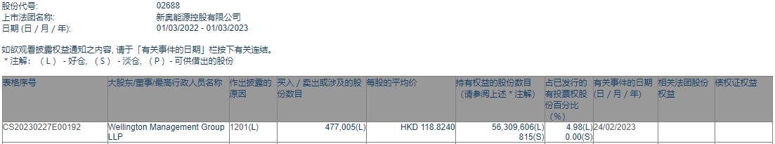 LLP减持新奥能源(02688)47.7005万股,每股作价118.824港元,总金额约为5667.96万港元。减持后最新持股数目约为5630.96万股,最新持股比例为4.98%。