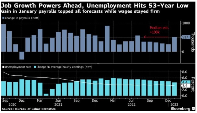 Thornburg投资管理公司投资组合经理Emily Leveille表示,即使裁员(主要在科技行业,但在其他劳动力领域也很明显)迄今已得到控制,但这无助于改善市场信心。尽管如此,失业率已经跌至53年低点,认为工作“充足”的人的比例飙升至52%,为去年4月以来的最高水平;那些认为很难找到工作岗位的人的比例下降。她补充说,通货膨胀仍然持续高涨,继续侵蚀人们的预算,侵蚀家庭的购买力。