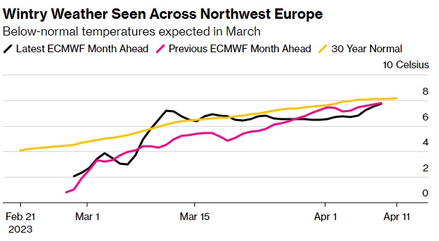 近期的寒流正值欧洲冬季结束之际,这个暖和的冬天帮助欧洲度过了俄乌战争之后的第一个冬季,暖冬帮助欧洲保持了天然气储备的充足,避免了能源危机期间轮流停电的末日场景。不过,寒冷的3月可能会对这些库存造成一定压力,而远在包括纽约在内的美国东北部,一场风暴带来了降雪。
