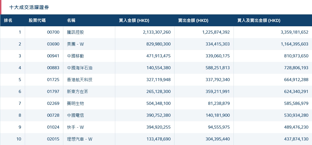 电信股再获增持,中国电信(00728)、中国移动(00941)分别获净买入6.81亿、5.63亿港元。消息面上,中共中央、国务院近日印发《数字中国建设整体布局规划》。银河证券指出,数字经济新基建建设不断夯实,云网业务快速扩展将带来低估值运营商板块结构性机会;同时随着数字经济及数据要素政策需求拉动,通信+新基建板块有望率先预期上修。高盛则指出,三大运营商的企业业务将成为未来几年的主要增长动力,尤其是云业务,预计三大电讯商今年的云业务收入增长50%至60%。