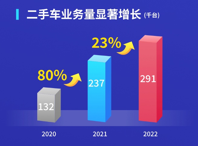 首先就基本盘而言,2022年易鑫的二手车业务继续兑现增长预期。根据财报,该年度易鑫的二手车融资交易量为29.1万辆,同比增长23%,在融资交易总量中的占比升至52%。