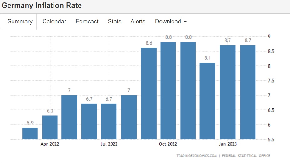 此外,昨日公布的德国2月调和CPI年率初值显示,德国2月CPI同比上涨9.3%,超出经济学家们预期的9%,仍处于历史高位附近。根据非欧盟调和标准,德国1月份CPI初值同比涨幅高达8.7%,与上月的历史高位水平一致,经济学家预期则为8.5%。