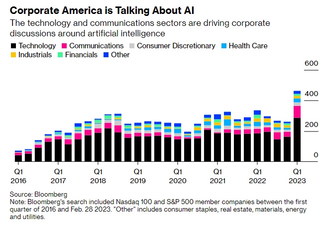 美国企业正在谈论人工智能——尤其是技术和通信行业正推动企业围绕人工智能展开业务讨论