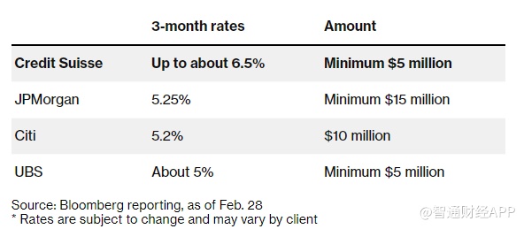 智通财经APP获悉,瑞信(CS.US)正在加大努力,以远高于竞争对手的存款利率赢回客户,因为多位高级银行家的离职增加了其重振资产的紧迫性。据知情人士透露,在去年第四季度出现前所未有的资金外流后,瑞信已将亚洲地区500万美元及以上新存款的3个月利率上调至最高6.5%左右。这比瑞信去年12月的报价高出近100个基点,也高于瑞银(UBS.US)、摩根大通(JPM.US)和花旗集团(C.US)等竞争对手在该地区的报价。