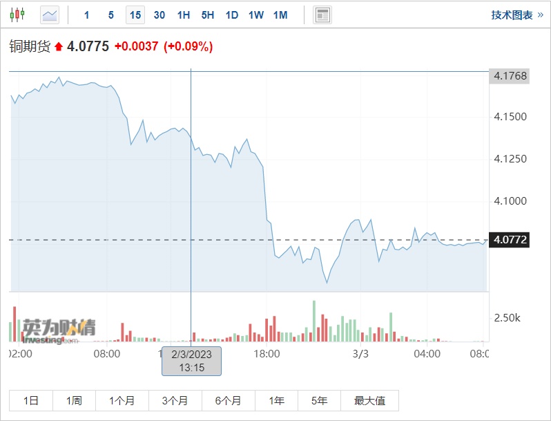截至发稿,铜期货最新报每磅4.07美元,年初至今上涨约8.34%。