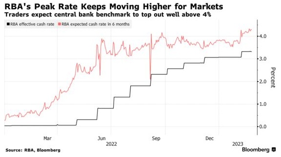 货币市场预计今年的现金利率将攀升至4.2%。相比之下,经济学家的平均共识峰值为3.85%。