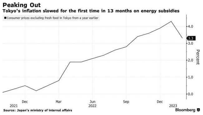 智通财经APP获悉,根据最新数据显示,日本东京通胀率在一年多来首次放缓,但这主要是因为政府补贴的增加掩盖了价格上涨的趋势,这将使人们继续关注日本央行在植田和男上任后的政策路径。