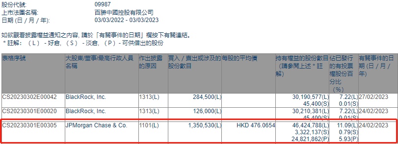 智通财经APP获悉,香港联交所最新资料显示,2月24日,小摩增持百胜中国(09987)135.0530万股,每股作价476.0654港元,总金额约为6.43亿港元。增持后最新持股数目约为4642.48万股,最新持股比例为11.09%。