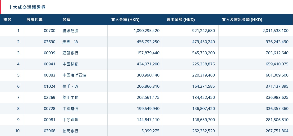 北水净买入最多的个股是中国移动(00941)、南方恒生科技(03033)、快手-W(01024)。北水净卖出最多的个股是建设银行(00939)、招商银行(03968)、腾讯(00700)。