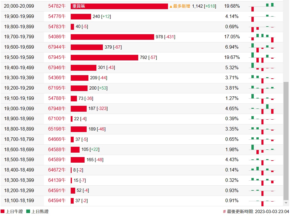 牛证街货重货区在20000-20099区间,该区间最新牛证数量为1142张,较上一交易日增加618张;最多新增在同一区间。
