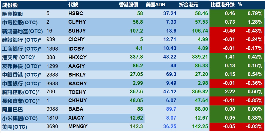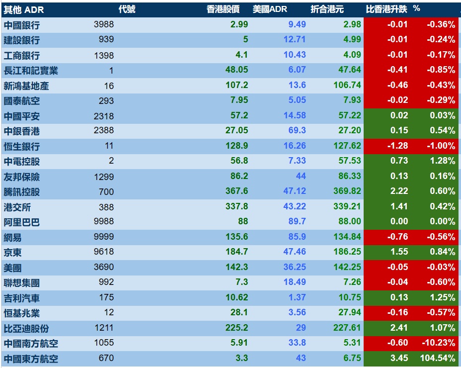 智通财经APP获悉,周五美股三大指集体收涨,港股ADR指数上涨,按比例计算,收报20619点,较香港收市涨52.09点或0.25%。
