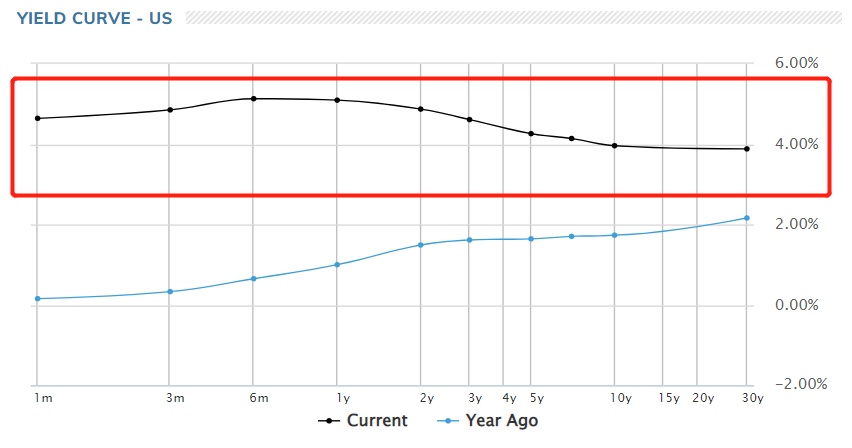 作为金融市场无风险利率的最重要参照标的,有着“全球资产定价之锚”之称的10年期美债收益率是全球众多金融工具的参考基准,比如,比如全球国债基准收益率,以及美国抵押贷款利率等。由于市场预期美联储将继续坚持收紧货币政策并将高利率维持至年底(Higher for longer)以控制通胀率,而不是此前预期的年前降息,因此10年期美债收益率正被推高。