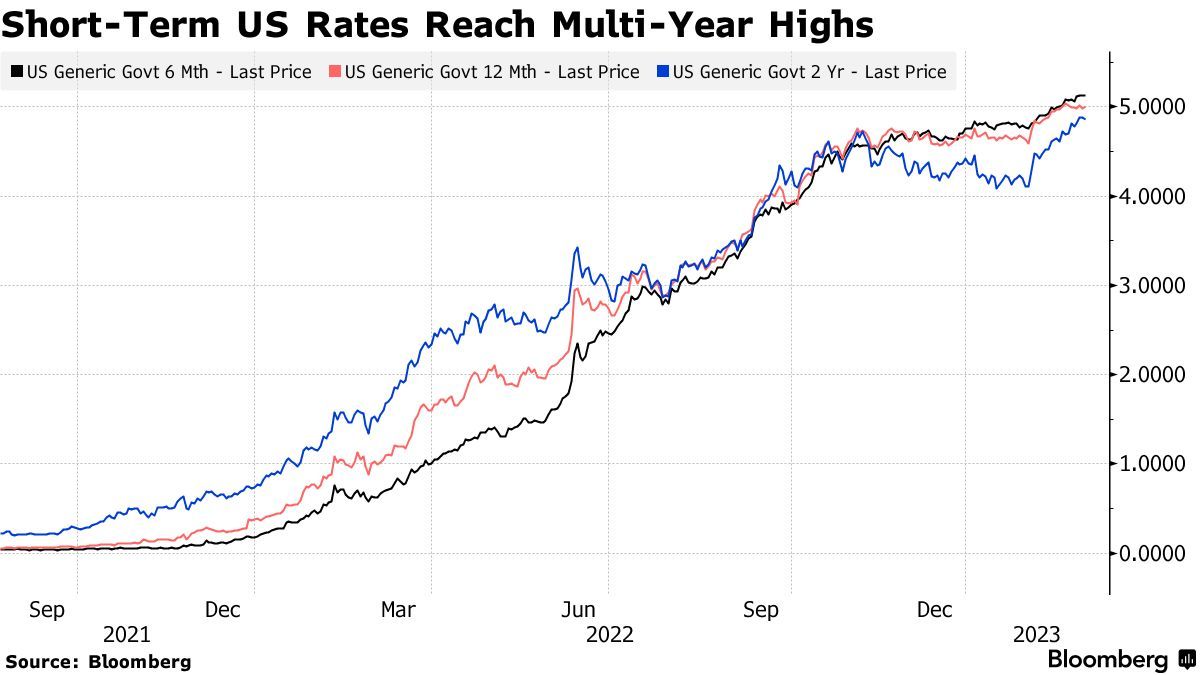 收益率可能正在见顶的观点也使得一些分析人士告诫投资者在投资债券时要格外谨慎。尽管近几周人们越来越多地押注美联储最终将需要加息超过5%以遏制通胀,从而推高美国国债收益率,但多数交易员们预计美联储将在9月前结束加息,明年年初可能开启降息周期。摩根士丹利在最新报告中预计美联储将在2024年3月进行首次降息,之前该机构的预测是2023年12月。
