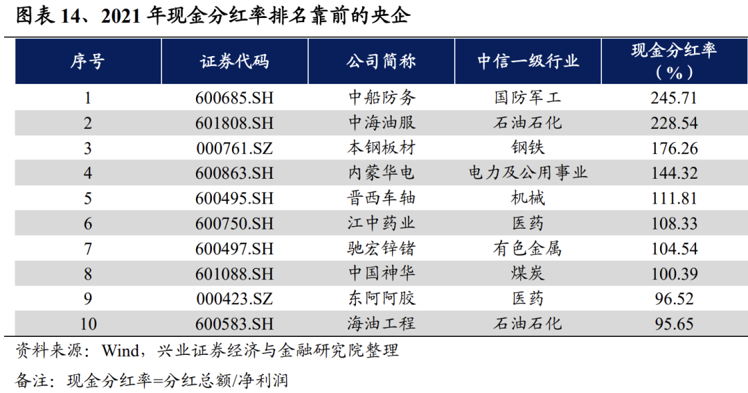 《方案》要求制定合理利润分配政策,通过分红优化股东回报。《方案》支持上市公司在考虑多种因素的基础上,“制定合理持续的利润分配政策,鼓励符合条件的上市公司通过现金分红等多种方式优化股东回报”。2017-2021年共有198家央企上市公司持续现金分红。一般来说,相对于没有持续分红的央企,高分红的央企盈利能力和成长能力都更强,最终也可以获得更高的股票收益。建议关注分红率靠前的央企。