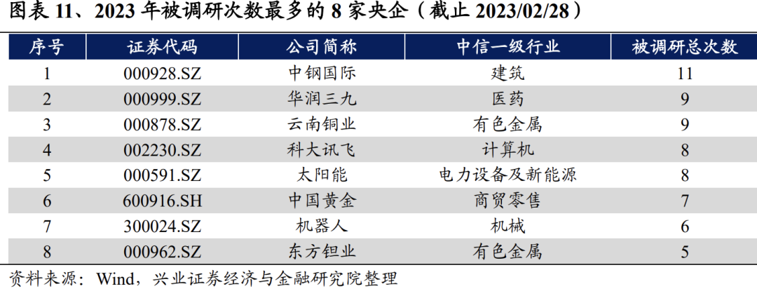 《方案》要求央企强化投资者关系管理,建议关注被机构高频调研、分析师覆盖次数多的央企。无论是《方案》,还是易会满主席的近期讲话,都提及了强化投资者关系管理对于价值实现的重要性。与投资者交流的方式包括法定信息披露平台以及股东大会、投资者说明会、路演、反向路演(公司开放日)、分析师会议、接待来访、公司网站专栏、新媒体平台等。其中,各类投资机构和分析师是资本市场的重要参与者,其调研与覆盖行为或将有效强化央企与投资者关系。建议关注被调研次数和分析师覆盖次数居前的央企。
