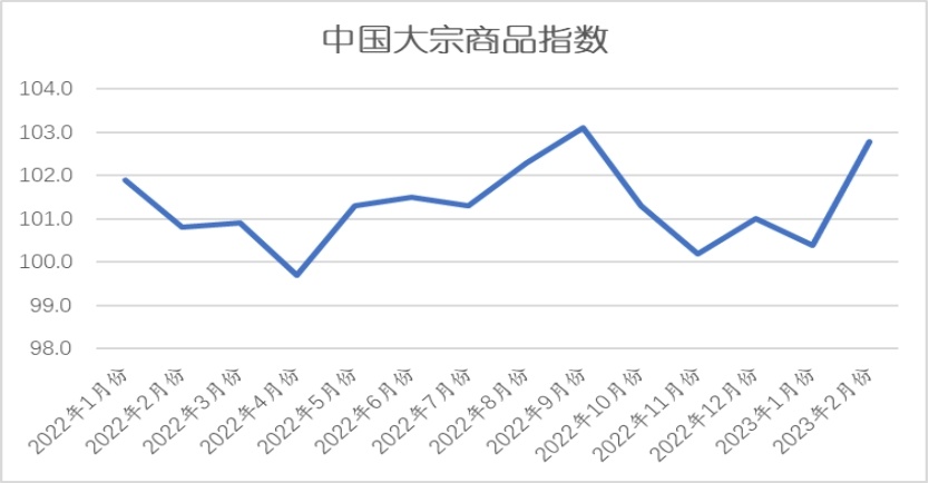 2023年2月份中国大宗商品指数(CBMI)为102.8%