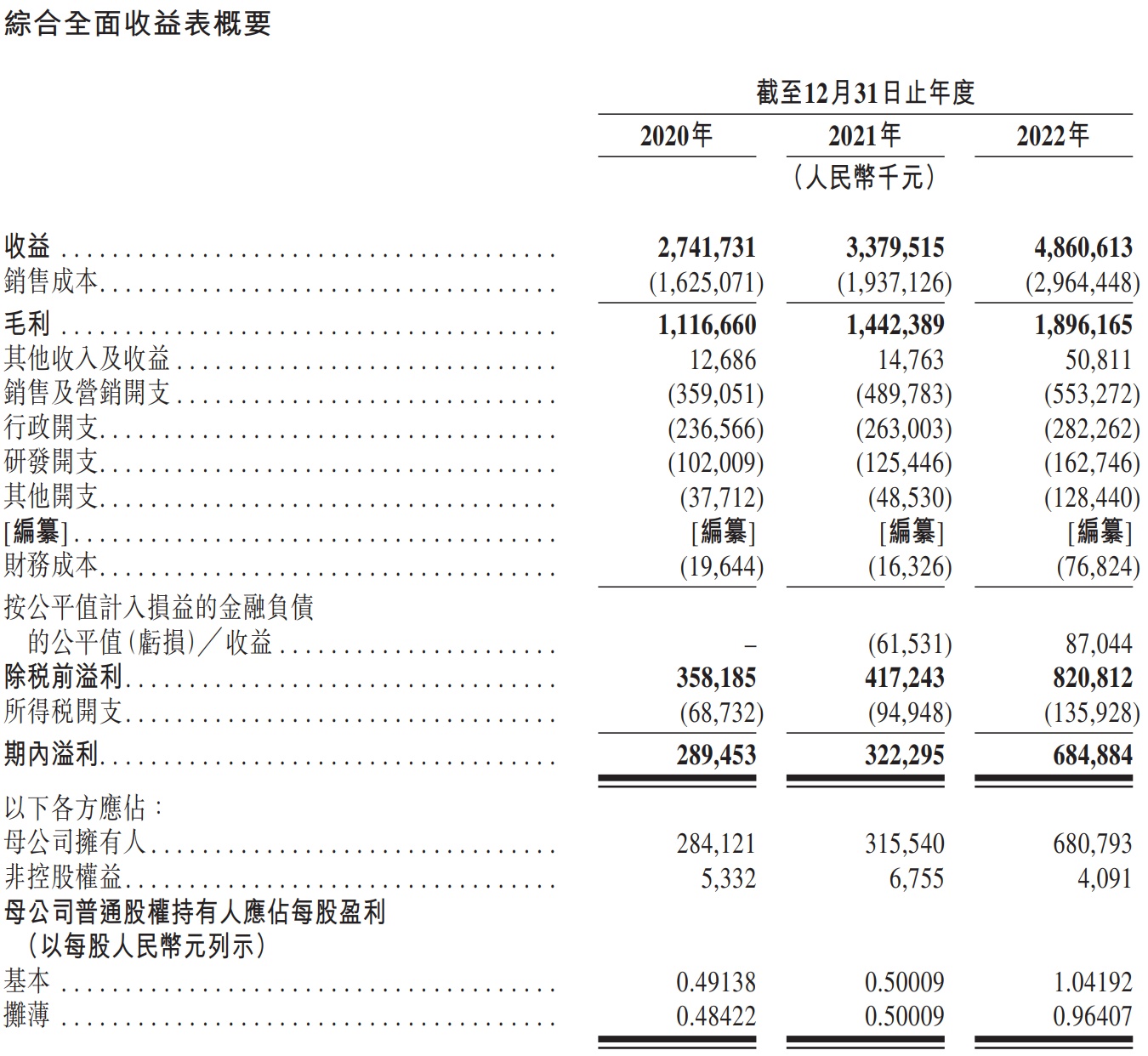 于2020年、2021年以及2022年度,艾迪康收益分别为约27.42亿元、33.80亿元、48.61亿元人民币;同期,年内溢利分别为2.89亿元、3.22亿元、6.85亿元人民币。