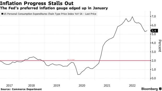 近段时间以来,一些美联储官员暗示,在一系列就业、物价和消费方面的强劲数据公布之后,他们可能不得不采取更多措施来抑制通胀。与此同时,这一系列数据也促使交易员押注联邦基金利率峰值将高于去年12月美联储官员们的预期中值5.1%。