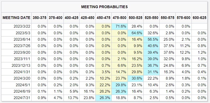 然后,美联储将在3月22日公布利率决议和新的季度利率预测,鲍威尔将举行新闻发布会。在那之后,投资者应该非常清楚美联储是否会在未来几个月的某个时候停止加息。