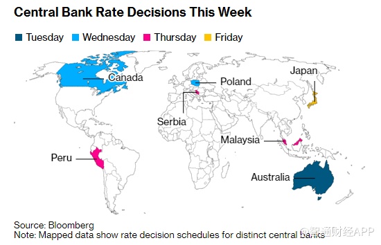 本周,多家央行将公布利率决议。加拿大央行可能会停止加息,而澳洲联储可能会再次加息,日本央行的决定或许将标志着一个超宽松时代的结束。
