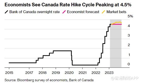 市场预计加拿大央行将把利率维持在4.5%不变,这是自去年3月开始加息后首次按下暂停键。