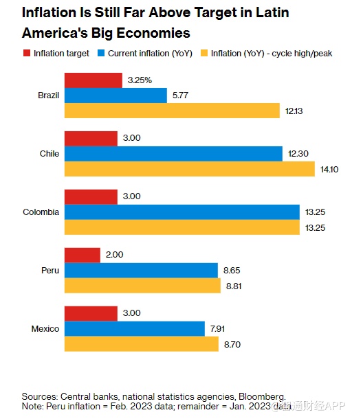 拉丁美洲大型经济体的通胀率仍远高于目标水平