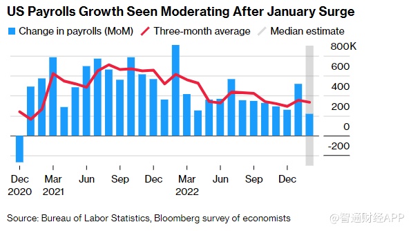 在1月份的强劲增长之后,美国2月份的就业人数增长可能有所放缓,而失业率可能保持在53年来的最低水平,这表明就业市场基本上不受美联储大规模加息的影响。