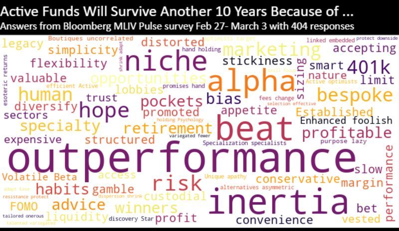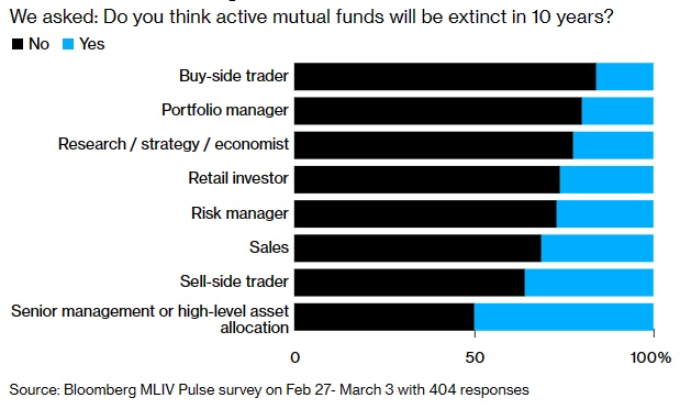 虽然大多数受访者认为,主动型基金的市场份额将持续输给被动型基金,但他们预计主动型基金在未来10年内不会消失.四分之三的受访者认为主动型基金将继续存在,理由包括表现突出和投资者的惯性;只有25%的受访者认为主动型基金将不复存在。