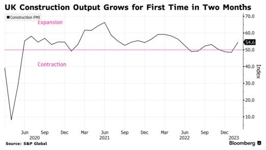 智通财经APP获悉,英国2月建筑业产出两个月来首次回到荣枯线上方,这提振了人们对经济可能避免长期衰退的希望。数据显示,美国标普全球公司和英国特许采购与供应协会编制的建筑业PMI2月跃升至54.6,高于一个月前的48.4,为2022年5月以来的最高水平。