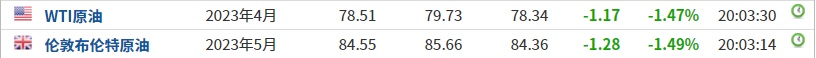 3. 截至发稿,WTI原油跌1.47%,报78.51美元/桶。布伦特原油跌1.49%,报84.55美元/桶。