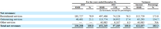 从业务结构来看,罗科仕的收入来自招聘服务,包括灵活就业招聘服务和长期就业招聘服务,外包服务,及其他服务,包括信息技术服务和培训服务。目前,招聘服务是公司的顶梁柱,企业客户是公司迄今为止最重要的收入来源,这些有招聘、培训、销售线索生成和外包需求的公司,在2021年为其贡献超过75%的净收入。