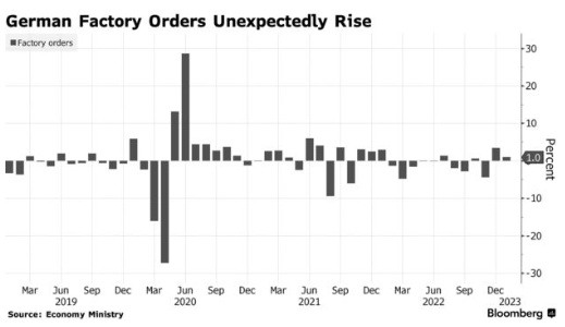 智通财经APP获悉,德国1月份季调后制造业工厂订单环比增长1%,超预期,前值为增长3.4%,今年开局乐观,市场的预期为下降0.7%。德国统计局表示,订单量的增长是由于资本货物,特别是飞机和航天器制造以及机动车发动机的需求上升。
