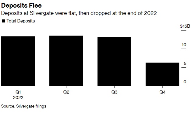 存款流失——Silvergate存款持平,然后在2022年底骤降