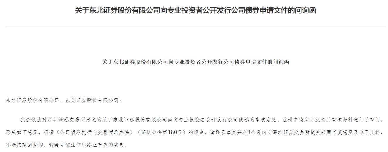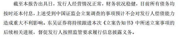 对于立案调查对公司债券的影响,东北证券在公告中表示,公司经营情况正常,财务状况稳健,目前所有债务均按时还本付息,上述事项不会对公司偿债能力造成重大不利影响。