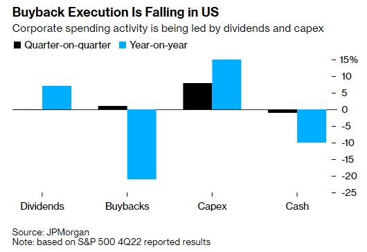 不过,该行策略师指出,尽管今年迄今为止宣布的回购计划屡创新高,但执行数量一直在下降。去年第四季度股票回购减少了20%,自去年第一季度以来,回购速度有所放缓。
