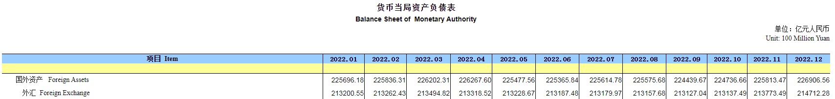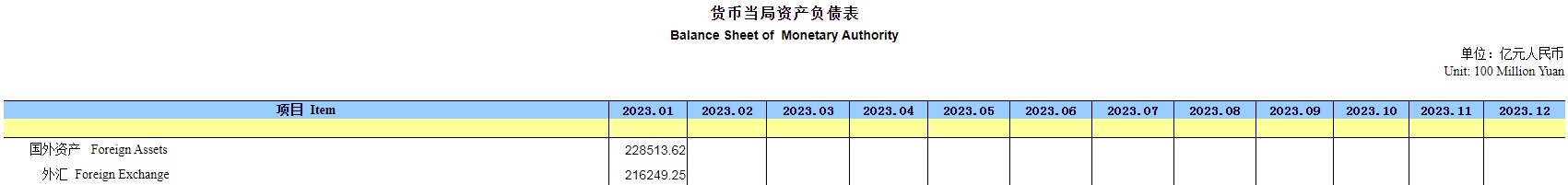 智通财经APP获悉,3月10日消息,中国人民银行公布的货币当局资产负债表数据显示,2023年1月末央行外汇占款为216249.25亿元人民币,环比2022年12月的214712.28亿元,增加1536.97亿元人民币。