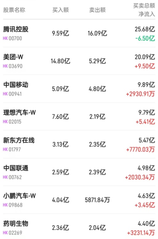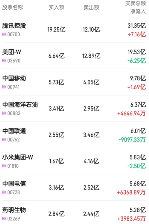 此外,药明生物(02269)、腾讯(00700)、中海油(00883)分别获净买入7214万、6616万、606万港元。