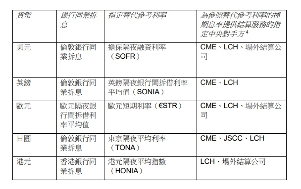 香港金管局与香港证监会建议,在《结算规则》下对参照不再或将不再发布或被视为具代表性的银行同业拆息的若干场外衍生工具交易进行结算的现行规定,将会由对参照相关替代参考利率的若干场外衍生工具交易进行结算的新规定所取代。相关人士在2023年4月11日或之前向香港金管局或香港证监会提交意见书。
