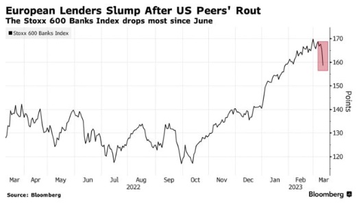 市场对硅谷银行的潜在影响感到不安,该银行在包括美国国债和抵押贷款支持证券在内的投资组合中遭受了重大损失。这引发了全球股市的抛售,投资者现在将注意力转向于防范美联储大幅加息后可能潜伏在其他金融机构的风险。